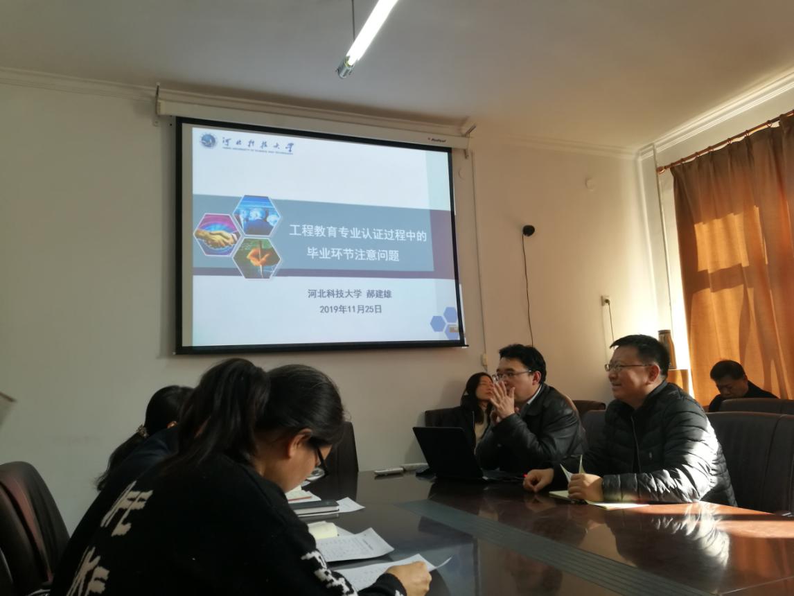 2019年11月25日,由教学评估与教师教学发展中心主办,bat365中文官方网站承办的本年度第224期教学沙龙顺利举行。河北科技大学bat365中文官方网站副院长郝建雄教授应邀做了工程教育专业认证过程中的毕业环节注意问题的教学沙龙,着重对毕业设计选题及写作做了交流分享,7个教学单位的50余名教师参加了活动。
