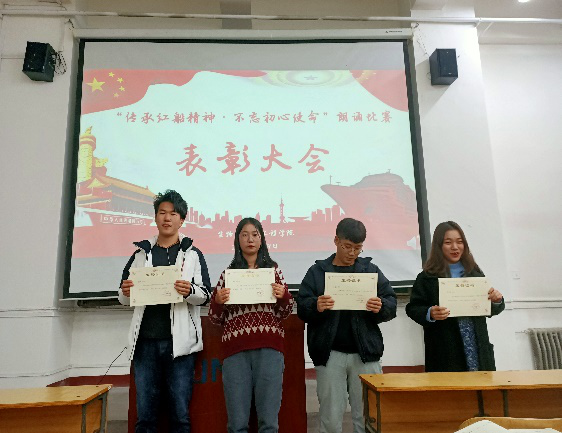 比赛共计21组24人参赛,共计分三个环节。首先是朗诵环节,21组选手声情并茂,或激情昂扬,或低沉吟诵,发挥着自己的最佳水平,他们的朗诵鼓舞人心,赢得了在场观众的情感共鸣。之后进行的游戏环节有党史问答、飞花令、听歌识曲,各组选手积极参与,气氛活跃。最后学院对表现优异的同学进行了颁奖。活动圆满结束。