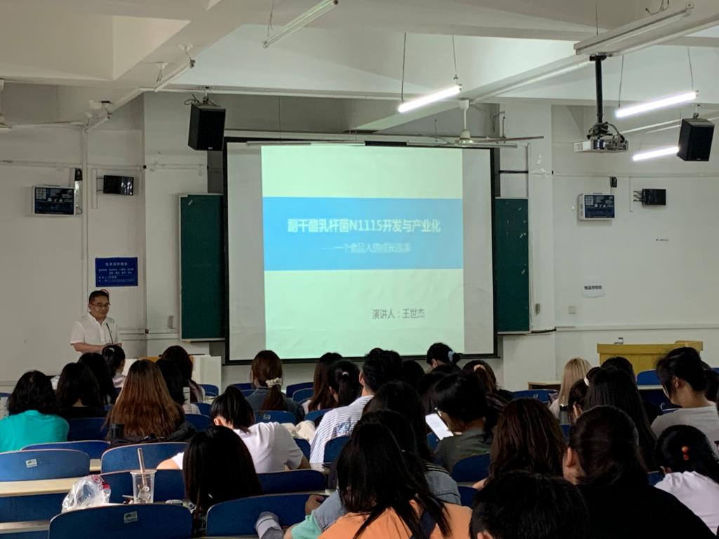 在“健康中国”的大背景下,益生菌以其强大的科技张力和融合力成为了公众对健康产品的新期待。应bat365中文官方网站邀请,5月31日下午,石家庄君乐宝乳业有限公司正高级工程师、国务院政府特殊津贴专家王世杰在B401作了题为“副干酪乳杆菌N1115开发与产业化”的专题报告。报告会由学院副院长张香美主持,学院教职工及学生200余人参加。