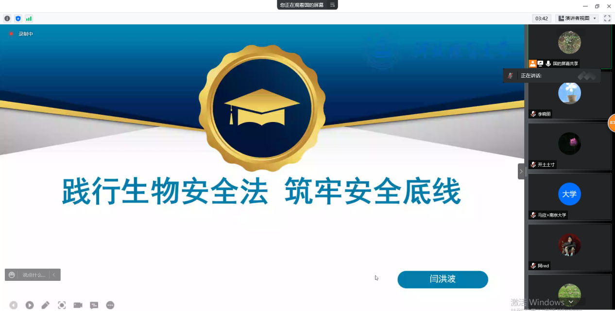 4月28日下午,bat365中文官方网站举办双百论坛,由闫洪波副教授通过腾讯会议作了《践行生物安全法筑牢安全底线》的专题报告,学校内外师生40余人参加。