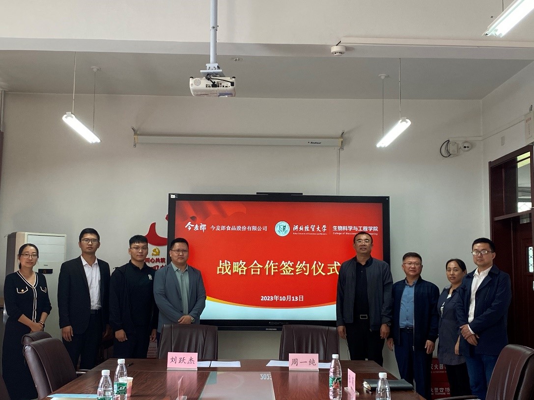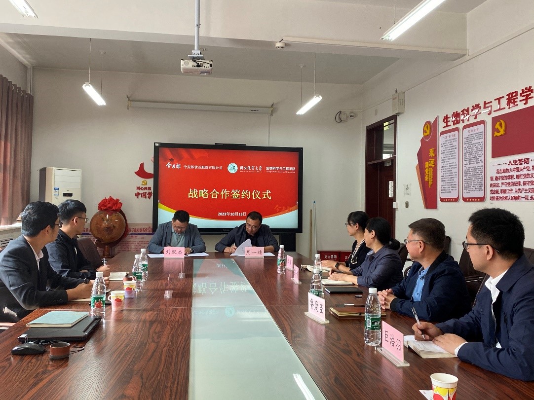 今麦郎食品股份有限公司刘跃杰介绍了公司的研发、生产、发展理念以及对招聘人员需求情况,周一纯书记介绍了bat365中文官方网站的基本情况。双方进行了愉快的交谈和沟通,针对双方感兴趣的方面达成共识,签订了校企合作协议。